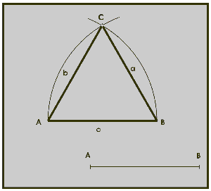 Trazado del triangulo16 ene 20161 Min. de lectura1. Se mide el primer lado conocido “a” 2. Con radio "b" en "uno" se traza un circulo 3. Con radio "c" en dos se traza un circulo 4. Donde se unen los puntos se unen a los puntos 1 y 2 teiangulo 2